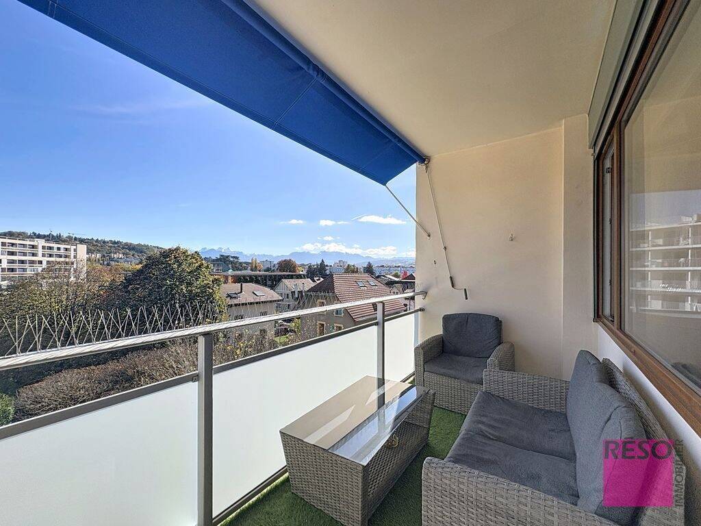 Situé au 5ème étage, cet appartement au style unique et rétro vous séduira par ses beaux volumes et par sa luminosité naturelle. La pièce de vie baignée de lumière offre un accès sur un balcon exposé sud-ouest avec une vue imprenable sur le Salève et le Jura.